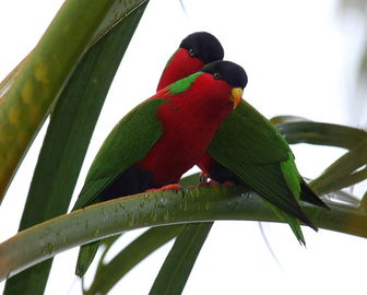 The Collared Lory (Phigys solitarius) is a monotypic species of parrot in the Psittacidae family, and it is the only species in the genus Phigys. It is endemic to the islands of Fiji. It is the only Fijian rainforest bird to adapt to urban landscapes and can be found in urban Suva. Measuring 20 cm (8 in), it has bright red underparts and face with a purple crown and greenish upperparts. Males and females are similar in plumage, although the latter have a paler crown. More